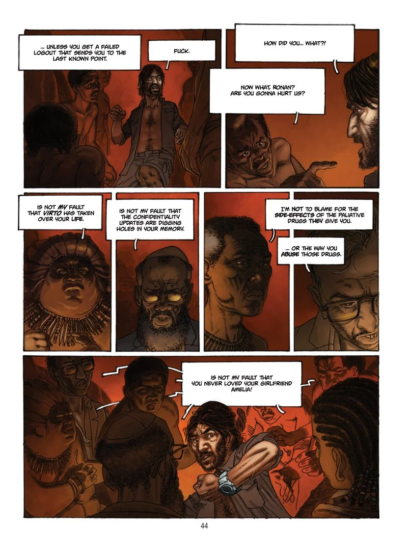 Sample pages from LOGOUT, written by Sergi Puertas, drawn by Pier Brito, published by Norma Editorial.